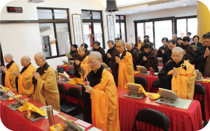 為迎接農曆七月的「盂蘭盆梁皇孝親報恩法會」,講堂僧眾及居士於國曆7/30至8/25加香用功,每周一至周五下午二點恭誦《地藏經》一部,共計21部。因法會之前,常住法師及義工們精心規劃、清潔、佈置,及會中法師、居士的精進禮懺、香積義工準備豐盛的點心、午齋,使來到講堂禮懺的居士及超薦親人的信眾備感溫馨、賓至如歸,非常歡喜。一年一度的盂蘭盆法會,在眾等虔誠恭敬的禮敬、供養、發心結緣中,莊嚴圓滿,人人善根增進,福、慧雙修,法喜充滿!
