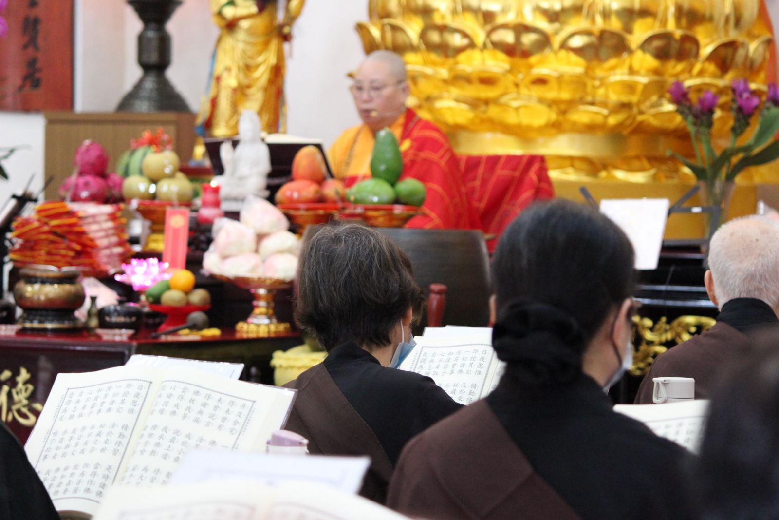 今天趁觀音菩薩成道紀念之日,此時是盂蘭盆法會前加香時段,下午13點30分,誦《妙法蓮華經》由〈化城喻品〉爾時大通智勝如來〈五百弟子受記品〉第八至,〈安樂行品〉第十四無量眾所敬接蒙山施食。法會圓滿提醒大眾:常樂我淨,舉足皆是;生老病死,無塵不入。恭逢觀音菩薩成道紀念日,期許大眾修習觀世音菩薩大慈大悲之精神,讓自己善根在心中茁壯成長,不僅自利,還利他,駕般若之慈航,救度一切眾生,願與佛菩薩一同修行,於普賢道上,永不退轉!