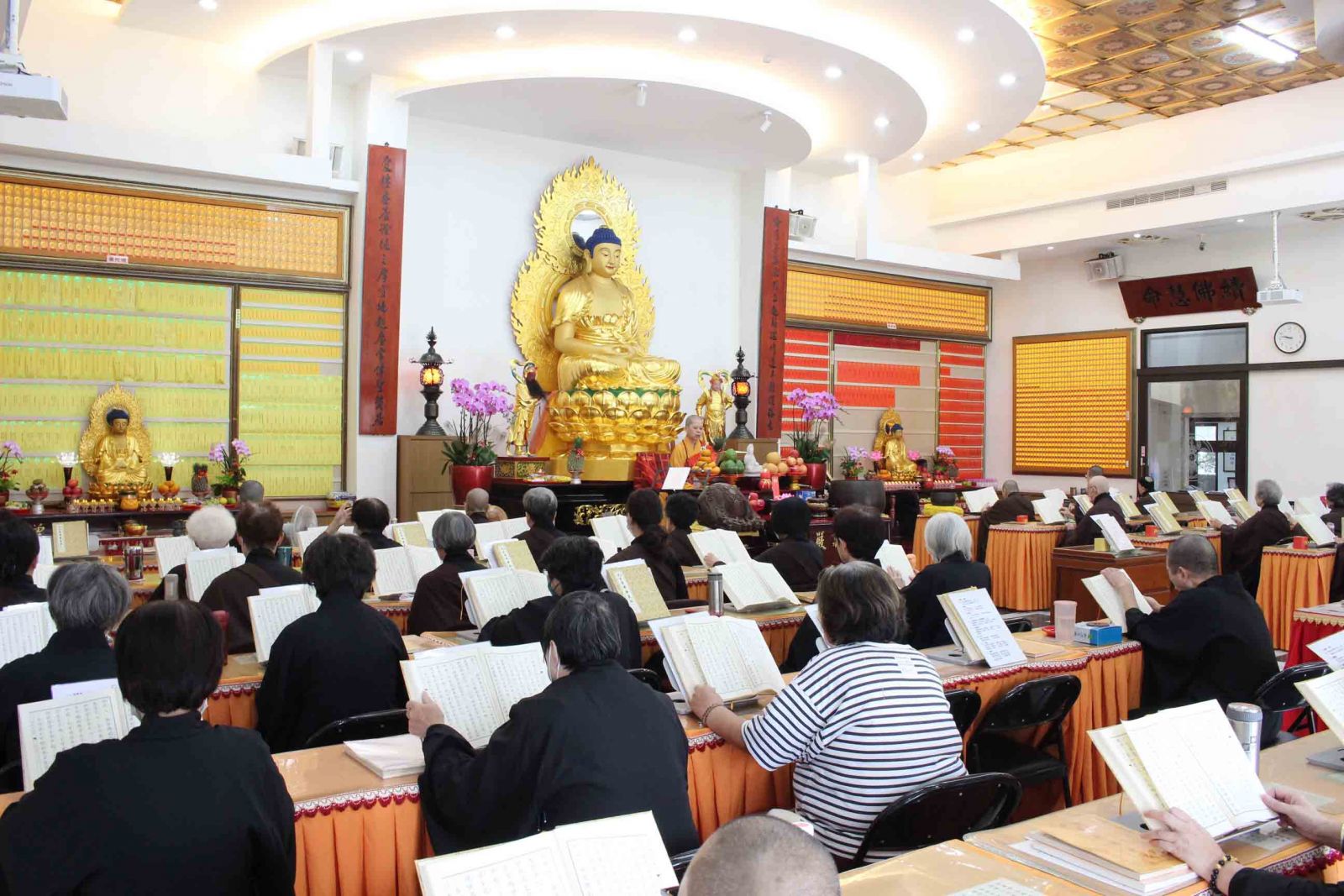 桃園市大溪區僑愛佛教講堂自10月31日起至11月9日,舉行為期十天的「秋季華嚴誦經法會」,信眾踴躍參加。住持天照法師主法,常住僧眾領眾諷誦經典。春季為卷一到卷四十、秋季從卷四十一至卷八十,二季共諷誦一部完整的八十卷《大方廣佛華嚴經》。華嚴四祖清涼澄觀將此經分為信、解、行、證四分,說明華嚴經修行次第。每日五支香,早上八點,法會開展,在寶鼎讚後,「遮那妙體」唱誦聲梵音繚繞,大眾攝心諦聽,身心平穩,沉浸華嚴的經偈及字母當中,深入經藏,得法利益;第二支香經文後,禮請法師開示《華嚴經》要義。午供後,下午二支香,晚課圓滿,約在下午四點三十分左右。9日,下午一點三十分誦《華嚴經》卷八十,第二支香普佛送聖等。